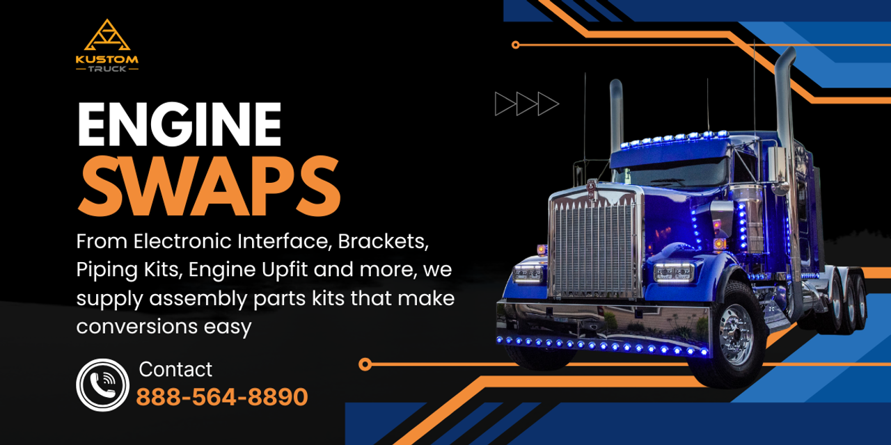 Upgrade your truck with precision-engineered engine conversion kits and custom wiring harnesses built for Peterbilt, Kenworth, Freightliner, and more. At Kustom Truck Parts, we specialize in complete heavy duty engine conversion solutions for Cummins, CAT, and Detroit Diesel applications. Get reliable, USA-designed parts that simplify your swap and deliver long-lasting performance.